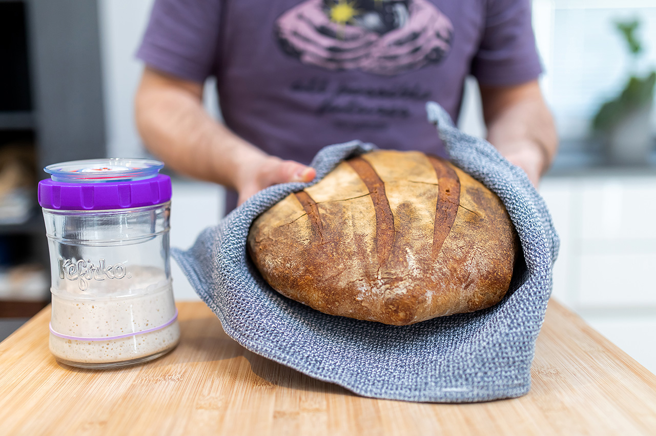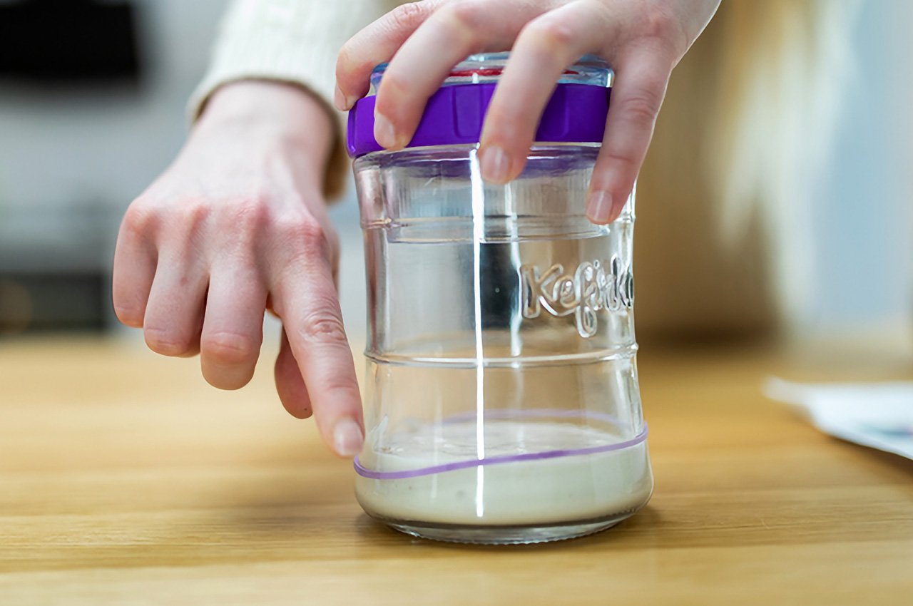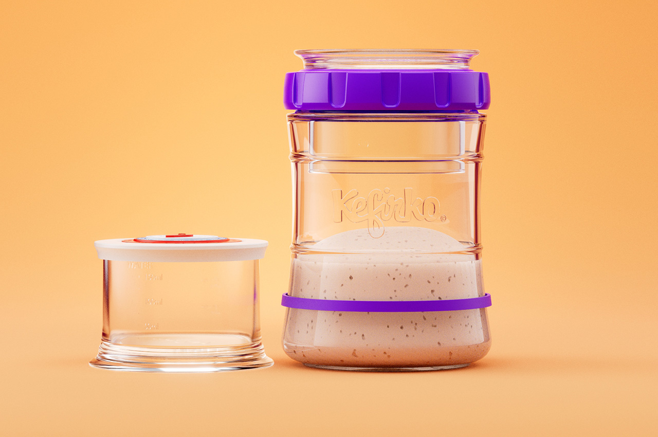 You can use the Kefirko Sourdough Fermenter with any sort of flour, whether it’s all-purpose, whole-wheat, or even rye. Each Kefirko Sourdough Fermenter comes with a rubber band that you can secure around the jar to mark your levain, so you can see how much it’s growing. You can portion out your sourdough using the tiny cup that comes with it, and each Kefirko Sourdough Fermenter also comes with two lids that can be used on the jar as well as the cup – effectively allowing you to create a new batch that you can either then culture separately, or store in the freezer to use later.
