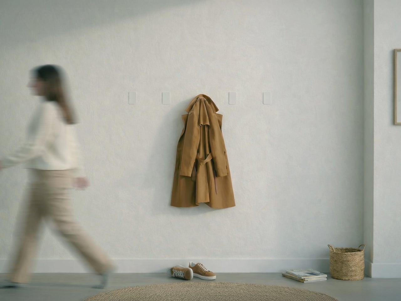 In narrow hallways or compact entryways, every protruding object becomes something you bump into or work around. Traditional coat racks and hooks always occupy space, even when empty, creating visual clutter on days when you are not using them. VELTO stays flat until pressed, so walls remain clean most of the time. When guests arrive or winter coats come out, hooks appear on demand, then fold back once everything is put away.